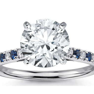 2,50 ct + 0,20 ct diament centralny / 0,20 ct kamienie boczne szafir
