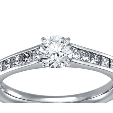 • The Queen Diamond - 0,40 ct diament centralny + 0,40 ct kamienie boczne Pierścionek z diamentem z białego złota
