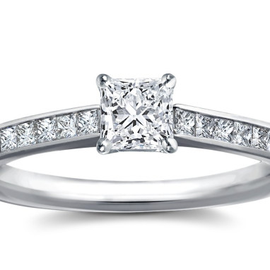 • The Queen Diamond - 0,30 ct diament centralny + 0,60 ct kamienie boczne Pierścionek z diamentem z białego złota