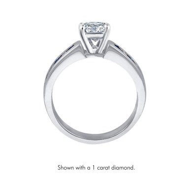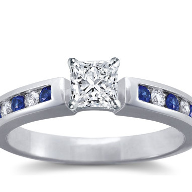 • The Queen Diamond - 0,40 ct diament centralny + 0,20 ct kamienie boczne / 0,20 ct Szafir Pierścionek z diamentem z białego złota