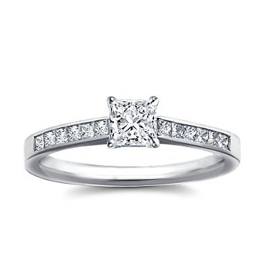• The Queen Diamond - 0,40 ct diament centralny + 0,30 ct kamienie boczne Pierścionek z diamentem z białego złota