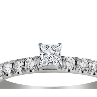 • The Queen Diamond - 0,20 ct diament centralny + 0,60 ct kamienie boczne Pierścionek z diamentem z białego złota