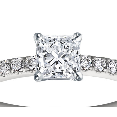• The Queen Diamond - 0,40 ct diament centralny + 0,36 ct kamienie boczne Pierścionek z diamentem z białego złota