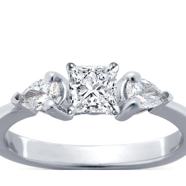 • The Queen Diamond - 0,40 ct diament centralny + 0,30 ct kamienie boczne Pierścionek z diamentem z białego złota