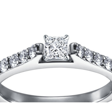 • The Queen Diamond - 0,30 ct diament centralny + 0,70 ct kamienie boczne Pierścionek z diamentem z białego złota