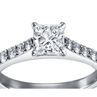 • The Queen Diamond - 1,00 ct diament centralny + 0,70 ct kamienie boczne Pierścionek z diamentem z białego złota