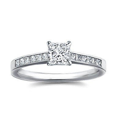• The Queen Diamond - 0,30 ct diament centralny + 0,48 ct kamienie boczne Pierścionek z diamentem z białego złota