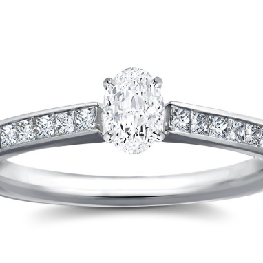 • The Queen Diamond - 0,30 ct diament centralny + 0,60 ct kamienie boczne Pierścionek z diamentem owalnym