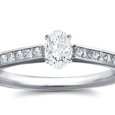 • The Queen Diamond - 0,50 ct diament centralny + 0,60 ct kamienie boczne Pierścionek z diamentem owalnym