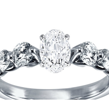 • The Queen Diamond - 1,00 ct diament centralny + 0,70 ct kamienie boczne Pierścionek z diamentem owalnym