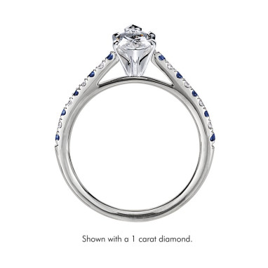 • The Queen Diamond - 0,50 ct diament centralny + 0,20 ct kamienie boczne / 0,20 ct Szafir Pierścionek z diamentem z białego złota