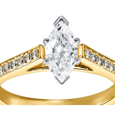 • The Queen Diamond - 1,00 ct diament centralny + 0,48 ct kamienie boczne Pierścionek z diamentem z żółtego złota
