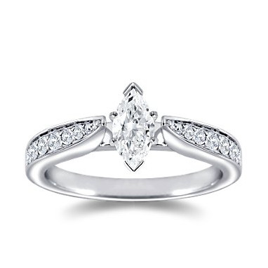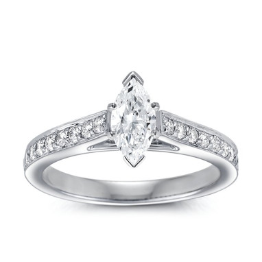 The Queen Diamond - 0,20 ct diament centralny + 0,60 ct kamienie boczne Pierścionek z diamentem z białego złota