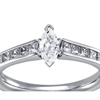 • The Queen Diamond - 0,30 ct diament centralny + 0,40 ct kamienie boczne Pierścionek z diamentem z białego złota