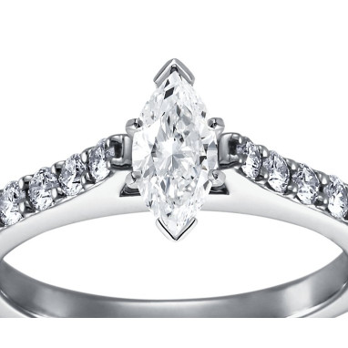 The Queen Diamond - 0,40 ct diament centralny + 0,70 ct kamienie boczne Pierścionek z diamentem z białego złota