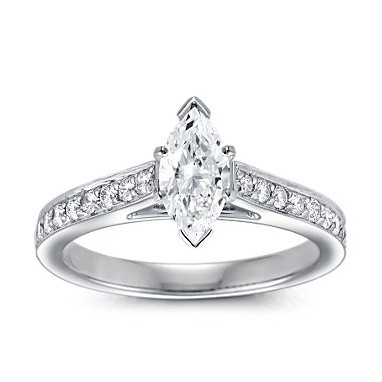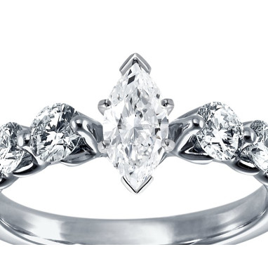 The Queen Diamond - 0,50 ct diament centralny + 0,70 ct kamienie boczne Pierścionek z diamentem z białego złota