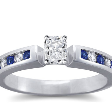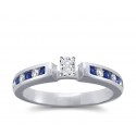 • The Queen Diamond - 0,40 ct diament centralny + 0,20 ct kamienie boczne / 0,20 ct Szafir Pierścionek z diamentem z białego złota