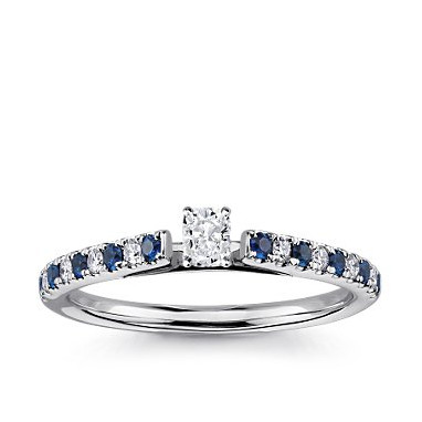 • The Queen Diamond - 1,00 ct diament centralny + 0,20 ct kamienie boczne / 0,20 ct Szafir Pierścionek z diamentem z białego złota