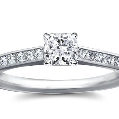 • The Queen Diamond - 0,70 ct diament centralny + 0,60 ct kamienie boczne Pierścionek z diamentem z białego złota