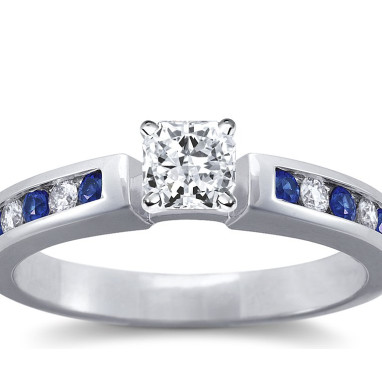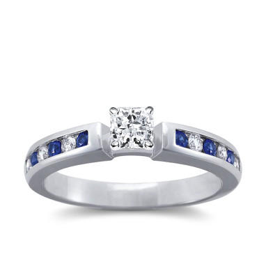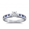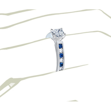 • The Queen Diamond - 0,40 ct diament centralny + 0,20 ct kamienie boczne / 0,20 ct Szafir Pierścionek z diamentem z białego złota