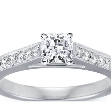 • The Queen Diamond - 0,50 ct diament centralny + 0,40 ct kamienie boczne Pierścionek z diamentem z białego złota