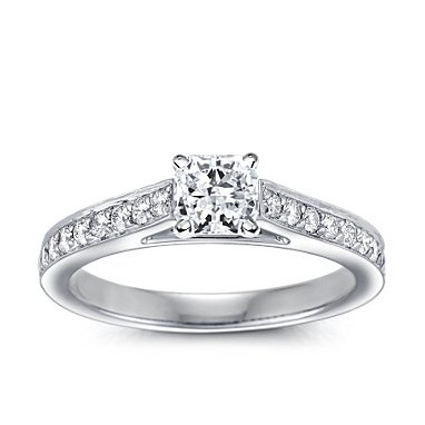The Queen Diamond - 0,70 ct diament centralny + 0,70 ct kamienie boczne Pierścionek z diamentem z białego złota