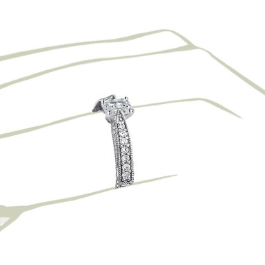 • The Queen Diamond - 0,20 ct diament centralny + 0,48 ct kamienie boczne Pierścionek z diamentem z białego złota