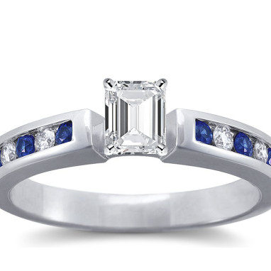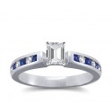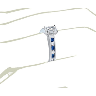 • The Queen Diamond - 0,40 ct diament centralny + 0,20 ct kamienie boczne / 0,20 ct Szafir Pierścionek z diamentem z białego złota