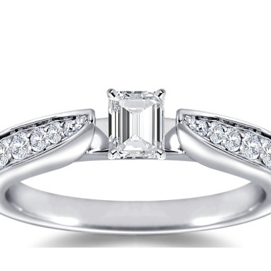 The Queen Diamond - 0,20 ct diament centralny + 0,48 ct kamienie boczne Pierścionek z diamentem z białego złota