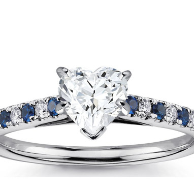 The Queen Diamond - 1,00 ct diament centralny + 0,20 ct boczne / 0,20 ct Szafir Pierścionek z diamentem w kształcie serca