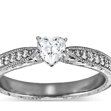 The Queen Diamond - 0,20 ct diament centralny + 0,48 ct boczne Pierścionek z diamentem w kształcie serca