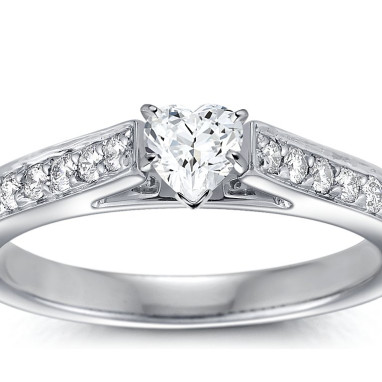 The Queen Diamond - 0,20 ct diament centralny + 0,64 ct boczne Pierścionek z diamentem w kształcie serca