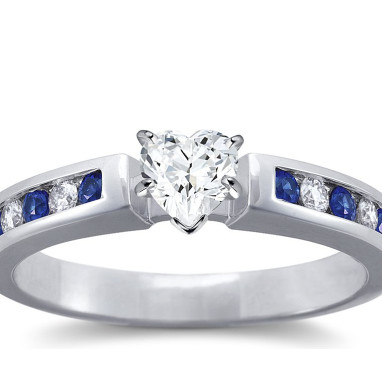 The Queen Diamond - 0,50 ct diament centralny + 0,20 ct boczne / 0,20 ct Szafir Pierścionek z diamentem w kształcie serca