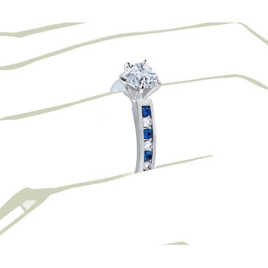 • The Queen Diamond - 0,50 ct diament centralny + 0,20 ct boczne / 0,20 ct Szafir Pierścionek z diamentem w kształcie serca