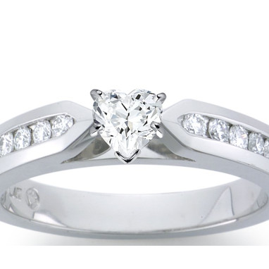 The Queen Diamond - 0,30 ct diament centralny + 0,60 ct boczne Pierścionek z diamentem w kształcie serca