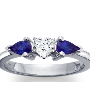 The Queen Diamond - 0,20 ct diament centralny + 0,30 ct boczne Szafir Pierścionek z diamentem w kształcie serca