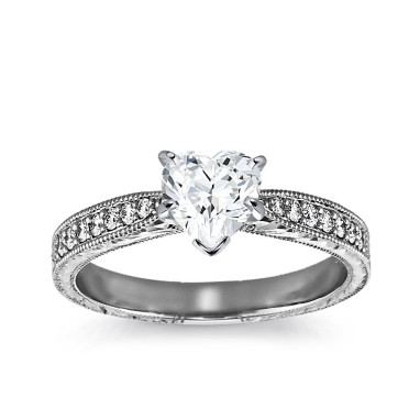 The Queen Diamond - 0,70 ct diament centralny + 0,30 ct boczne Pierścionek z diamentem w kształcie serca